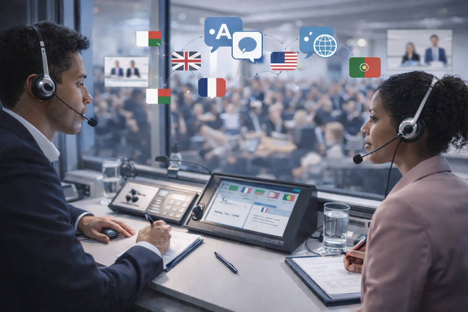 Nos interprètes assurent une communication claire, fidèle et fluide, permettant à chaque participant de s'exprimer et de comprendre pleinement, quelles que soient les langues utilisées.